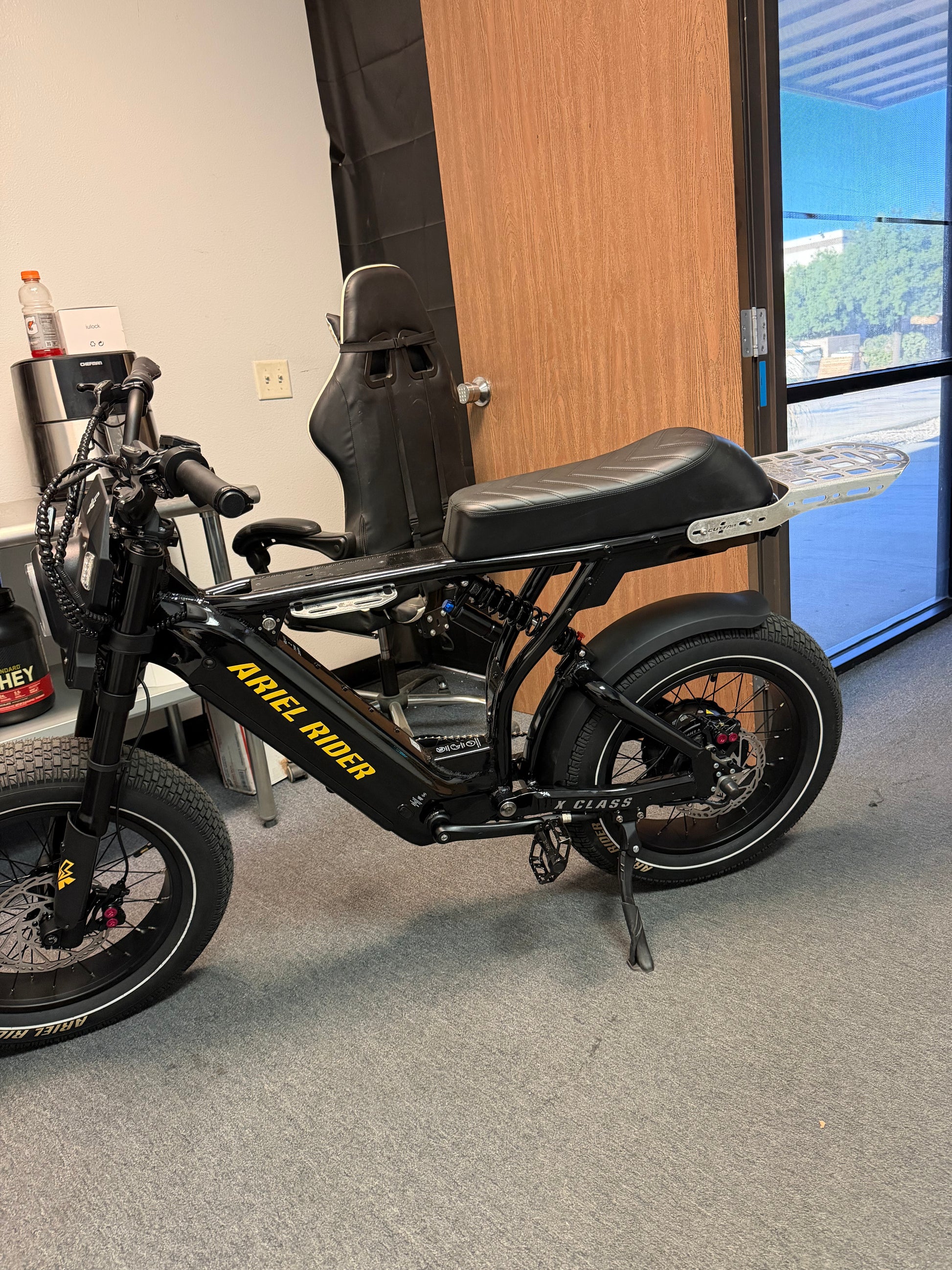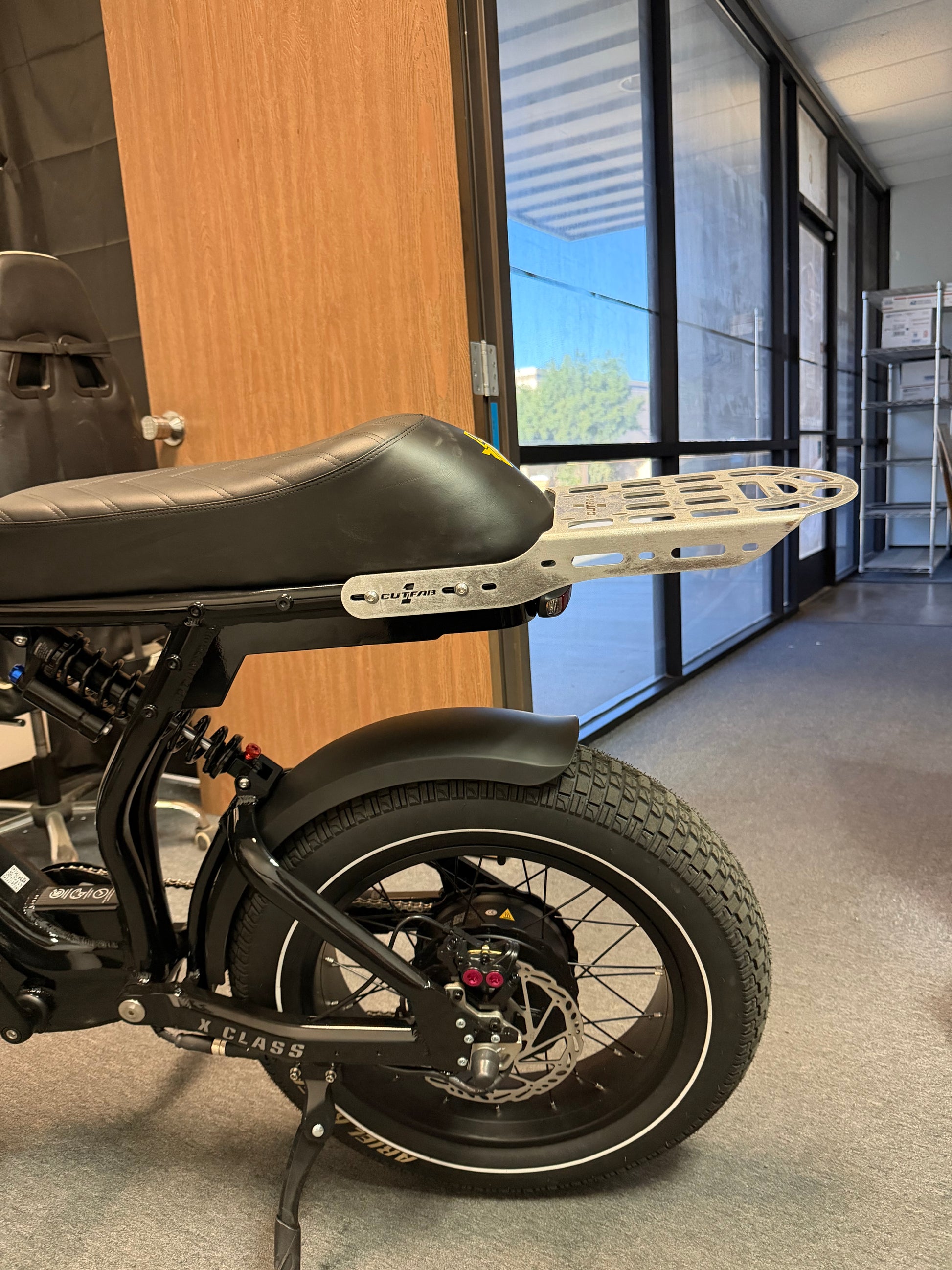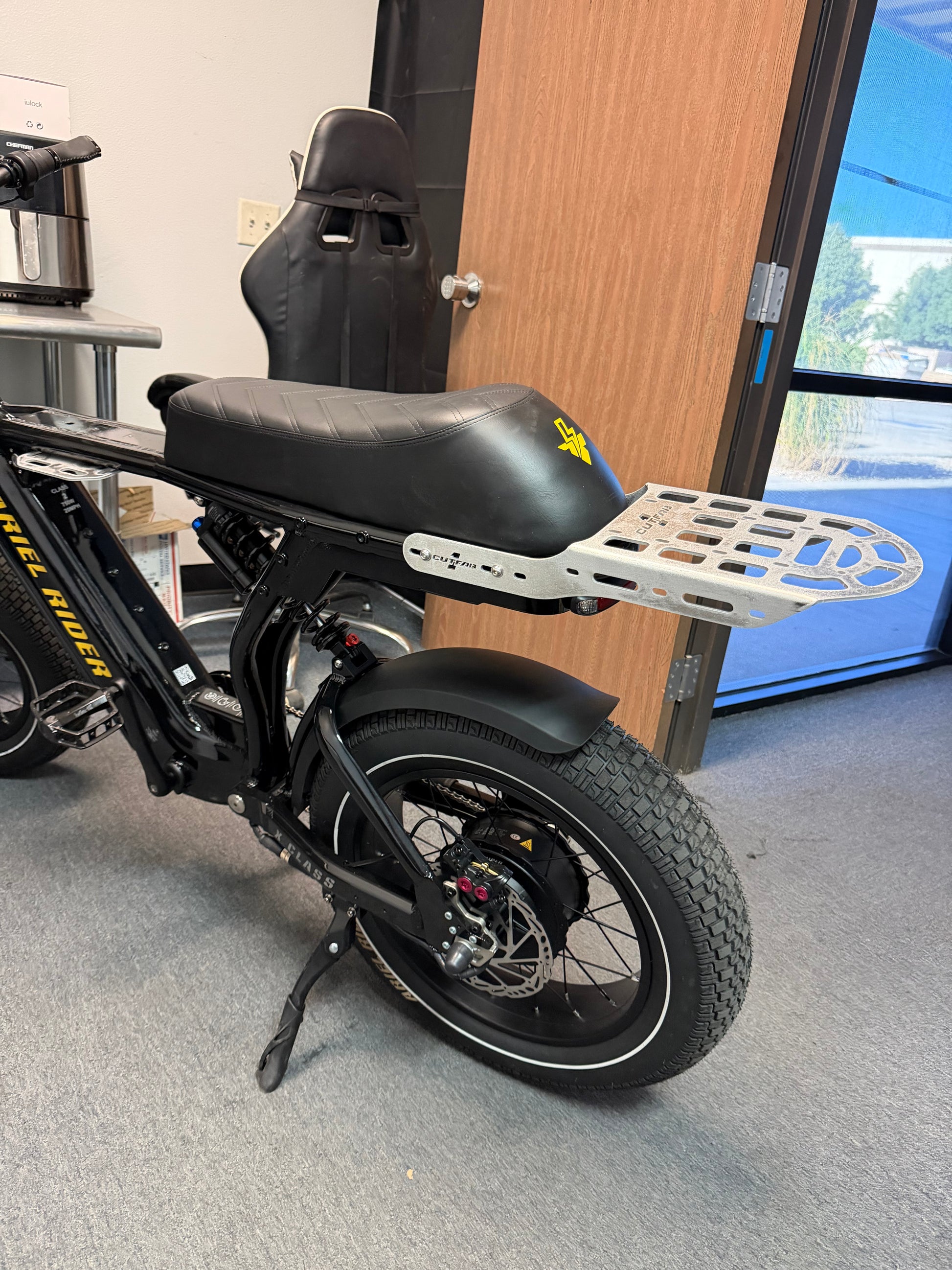 Enhance your Ariel Rider X Class 60V Electric Bike with the 1CUTFAB Rear Molle Rack, an essential aluminum carrier designed for both style and utility. Crafted for E-Bike enthusiasts seeking an upgrade, this custom accessory brings a touch of innovation to your ride. The Molle attachment system provides versatile functionality, allowing you to customize your electric bike with ease, whether it's for a thrilling outdoor adventure or daily commuting.